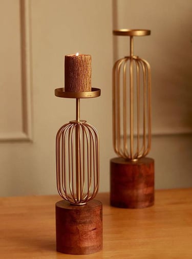 Wooden-Brass Candle stands
